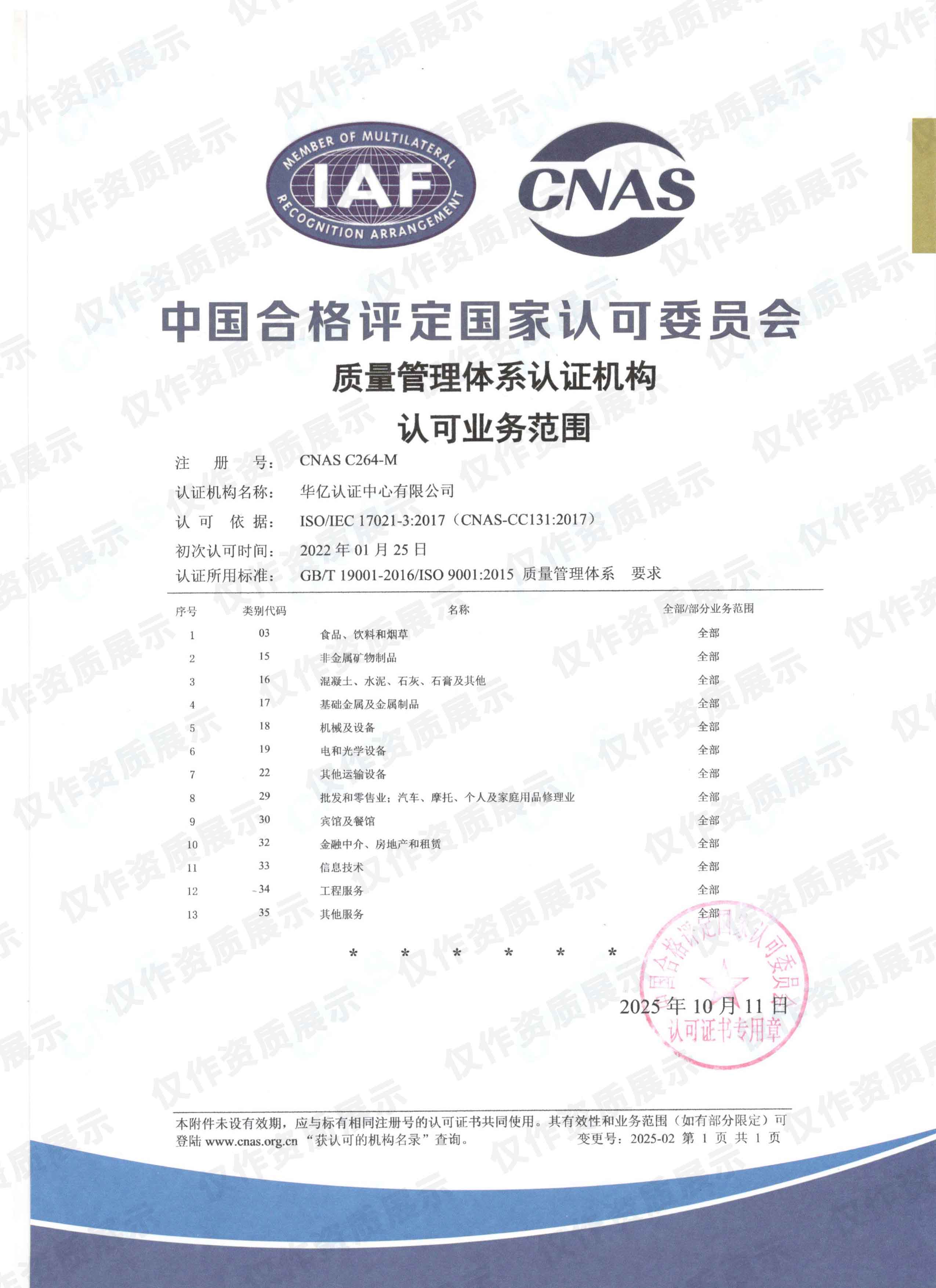 质量管理体系成功扩项!华亿认证中心再获CNAS认可